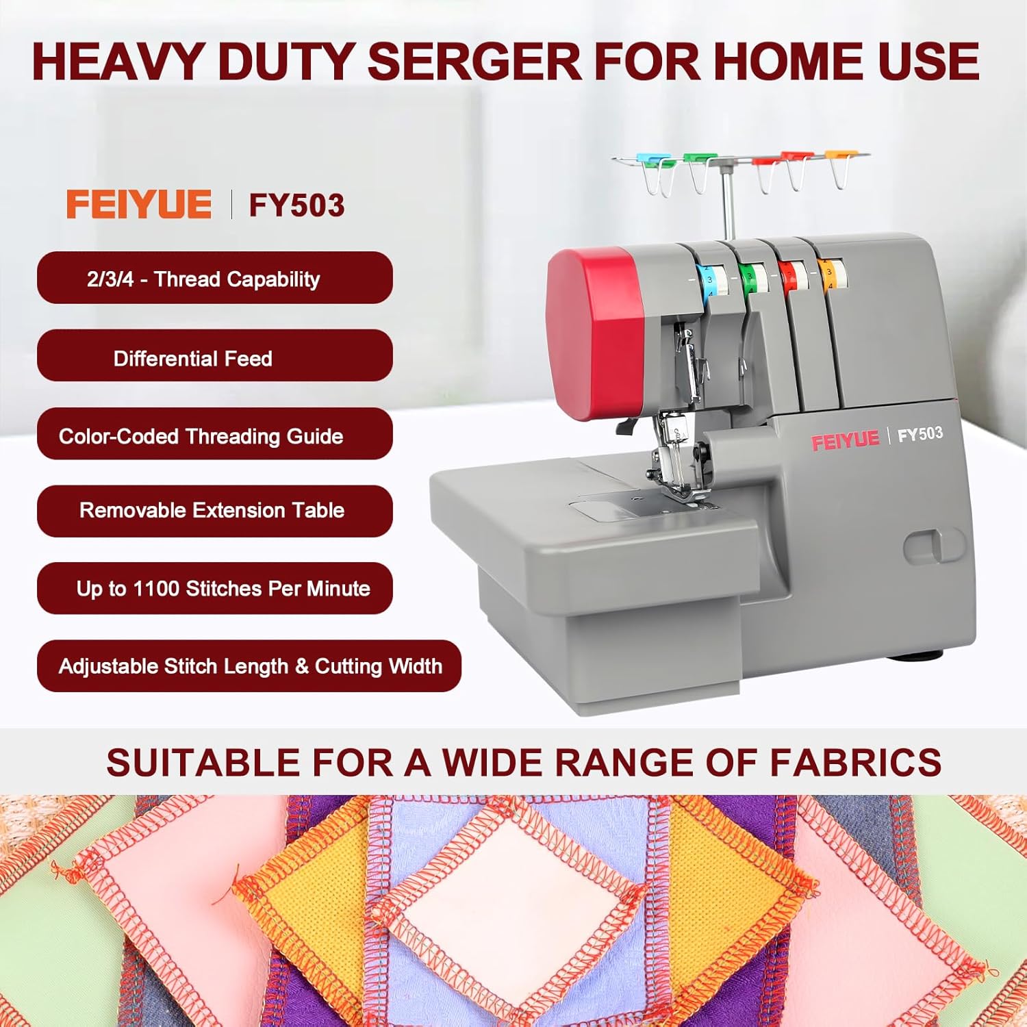 Δυνατότητα /3/4-κλωστών: Η μηχανή overlock FEIYUE FY503 υποστηρίζει πολλαπλές διαμορφώσεις κλωστών, επιτρέποντας στους χρήστες να δημιουργούν ραφές overlock,